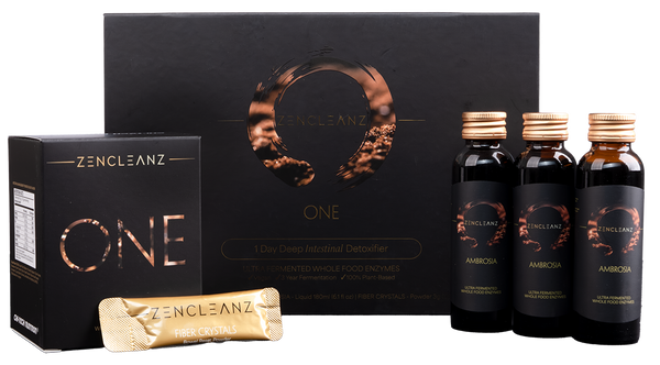 The ZenCleanz ONE is our flagship cleanse kit and the step 1 of our whole body 5-Element detoxification system. The ZenCleanz ONE is a revolutionary intestinal and colon cleanse that has the power to clear phenomenal quantities of intestinal mucoid plaque from the body in a single day. This power-packed fermented super enzyme cleanse kit contains only all-natural and organic ingredients, which include the AMBROSIA, a liquid enzyme formula, an Intestinal Management powder, and the Fiber Crystals tablets. Together, these enzymes help clear the body of long-term intestinal mucoid plaque: the contributory source of all illnesses. The ZenCleanz ONE discharges old waste, absorbs toxins from the intestinal walls, helps regulate and restore intestinal flora, and by these facts, improves immunity.